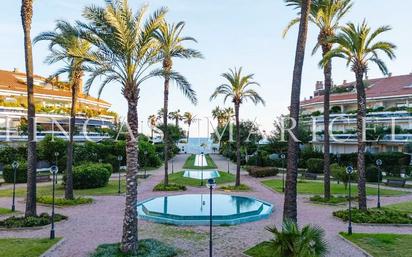 Exclusivo ático en Parc de Mar – Terramar, Sitges Ubicado en uno de los complejos residenciales más prestigiosos de Sitges, este elegante ático en Parc de Mar, en la codiciada zona de Terramar, ofrece privacidad, amplitud y una magnífica calidad de vida a escasos pasos del mar. La vivienda, con orientación suroeste, disfruta de una extraordinaria luminosidad durante todo el día y agradables vistas laterales al mar. Se distribuye en cuatro amplios dormitorios con armarios empotrados y cuatro baños completos, pensados para garantizar comodidad tanto en el día a día como al recibir invitados. El salón-comedor, cálido y acogedor, conecta con una de las terrazas principales, creando un espacio perfecto para disfrutar del clima mediterráneo. La cocina es independiente y funcional, con zona de lavandería anexa. Los suelos de parquet aportan elegancia y continuidad a toda la vivienda. Uno de los grandes atractivos de la propiedad son sus tres terrazas, destacando la situada en la planta superior, habilitada como solárium, ideal para relajarse con total privacidad. La vivienda dispone de aire acondicionado y calefacción por radiadores de gas, asegurando confort en cualquier estación del año. Incluye además: 2 plazas de parking (10 m² cada una) Trastero de 20 m² El complejo ofrece cuidados jardines, piscina comunitaria, ascensor y servicio de seguridad 24/7, convirtiéndolo en un entorno exclusivo y seguro durante todo el año. Una propiedad única en una de las mejores ubicaciones de Sitges, perfecta tanto como residencia habitual como segunda residencia junto al mar. [IW]