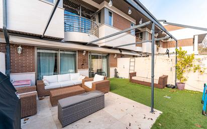 Magnífico chalet adosado situado en una urbanización privada en la zona del Centro Comercial, una de las áreas más demandadas de Torrelodones por su excelente ubicación y cercanía a colegios, todo tipo de servicios, restauración y zonas comerciales. La vivienda se distribuye en cuatro plantas comunicadas por ascensor, ofreciendo comodidad y funcionalidad en cada nivel. - En la planta principal, la entrada cuenta con un elegante cerramiento de cristal, ideal para un mejor aislamiento, y armarios empotrados. Dispone de una cocina office totalmente equipada, un amplio y luminoso salón con salida directa al jardín privado y un aseo de cortesía. - La planta -1 alberga dos habitaciones secundarias con acceso directo a un patio inglés, un baño completo y acceso directo al garaje con capacidad para dos coches. - En la primera planta encontramos dos habitaciones secundarias, cada una con baño en suite con ducha, conectadas entre sí por una terraza cerrada. Además, una amplia habitación principal con baño en suite que incluye ducha, lavabo de dos senos y una cómoda zona de vestidor. - La buhardilla es un espacio diáfano y muy luminoso, actualmente utilizado como zona de estar, con dos grandes ventanas Velux y acceso a una amplia terraza, ideal como zona de ocio o relax. La vivienda cuenta con placas solares, splits de aire acondicionado en todas las estancias, ventanas renovadas (en algunas estancias con doble ventana), paredes en liso y carpintería interior en blanco, lo que aporta eficiencia energética, confort y un estilo actual. Una vivienda ideal para familias que buscan espacio, comodidad y una ubicación privilegiada en Torrelodones. ¡NO DUDES EN PONERTE EN CONTACTO!