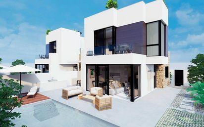 pPromoción de 3 viviendas de lujo en la zona de Aguas nuevas muy cerca del mar y de todos los servicios, varios modelos de viviendas para elegir y con las garantías necesarias de una de las mejores promotoras de la zona , 1 Vivienda unifamiliar aislada. Vivienda tipo villa en planta baja, primera y sótano, en parcela de 405m2 con piscina individual para el tipo 3. – 2 Viviendas unifamiliares pareadas. Vivienda tipo villa en planta baja, primera y sótano, en parcela de 306m2 con piscina individual para el tipo 2 y con 289 m2 para el tipo 1. – Cumplimiento de la normativa actualizada y Código Técnico de la Edificación. – Estructura de hormigón armado según E.H.E Y C.T.E. – Cerramiento exterior multihoja, con aislamiento termo-acústico, revestido externamente con mortero monocapa. – Pintura interior plástica acabado liso. – Pavimento de gres-porcelánico de primera calidad sobre mortero autonivelante. – Carpintería exterior en aluminio con rotura de puerta térmico y doble acristalamiento. – Carpintería interior de hoja lacada en liso en puertas y armarios. Puertas de paso de 4’5cm, 210 cm de altura, bisagra oculta, cierre magnético y juntas de goma. – Puerta de acceso a vivienda blindada con bisagras antipalanca y cerradura de seguridad. – Cocina totalmente amueblada y equipada con frigorífico, vitrocerámica, horno eléctrico, lavadora y extractor. Encimera de compac ó similar. – Instalación completa de Aerotermia, calefacción por suelo radiante/agua, aire acondicionado y agua caliente sanitaria. – Sanitarios y grifería de primera calidad. Cisternas encastradas en W.C. – Electrificación grado elevado(9,2)Kw y antena individual con preinstalación de telefonia/Internet. – Plaza de aparcamiento en interior de la parcela. – Piscina individual con zona jacuzzi. – Sistema de seguridad inteligente(CAM LIGHT)/p