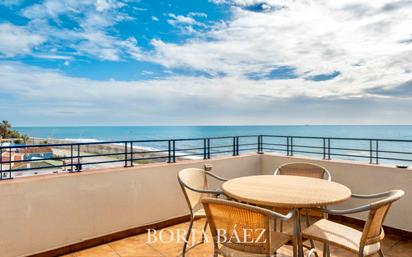 Exclusivo ático en primera línea de playa con gran terraza y espectaculares vistas al mar panorámicas y orientación sur. Vive frente al mar en este luminoso ático con espectaculares vistas de crucero, una joya única para quienes buscan tranquilidad, luz natural y vistas despejadas. Ubicado en una 4ª planta, destaca porque todas sus estancias son exteriores, lo que garantiza ventilación cruzada y una magnífica entrada de luz durante todo el día gracias a su orientación sur. La vivienda se distribuye en dos amplias habitaciones, un baño completo y cocina independiente. El salón es uno de los grandes protagonistas, ya que da acceso directo a una espectacular terraza de 42,75 m², ideal para disfrutar del sol, comidas al aire libre o inolvidables atardeceres con el sonido del mar de fondo. Edificio tranquilo con solo dos vecinos por planta, lo que aporta privacidad y comodidad. Incluye en el precio plaza de aparcamiento cubierta dentro del recinto y trastero, un valor añadido imprescindible en la zona. No dispone de ascensor. Una oportunidad única para vivir todo el año junto al mar o como segunda residencia para disfrutar de la playa con todas las comodidades. Contacte con nosotros para más información. Los honorarios de intermediación inmobiliaria están incluidos en el precio.