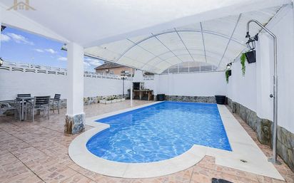 HOGARES vende en exclusiva espectacular chalet adosado con las mejores calidades, en una de las mejores zonas de Yeles con un espectacular y amplio jardín con cenador, barbacoa y piscina. En la planta principal encontramos; Un recibidor que distribuye hacia la vivienda, una amplia cocina donde encontramos zona de office con acceso a una zona de despensa y a ambos jardines, un amplio salón, habitación en planta, un baño completo y acceso al garaje, el jardín trasero cuenta con un cerramiento, piscina cubierta, cenador y barbacoa. un amplio salón, habitación en planta, un baño completo y acceso al garaje. La primera planta se compone de; Distribuidor muy amplio que da acceso al dormitorio principal que cuenta con armarios empotrados, acceso a la terraza, un baño en suite con bañera, dos dormitorios secundarios amplios, ambos dormitorios con armarios empotrados y vestidos y cuentan con split de aire acondicionado, cuarto de baño completo que de servicio a los dos, uno de los dormitorios secundarios con acceso a la terraza compartida con el dormitorio principal. En la última planta encontramos una gran buhardilla totalmente reformada para darle uso como habitación. La vivienda consta de aire acondicionado en todas las estancias, rejas, piscina climatizada con motor de agua caliente y cerramientos de cristal en los jardines delantero y trasero. PARA MAS INFORMACION PONGASE EN CONTACTO CON NOSOTROS. HIPOTECA 100% NO DUDES EN VENIR A VISITARLO!