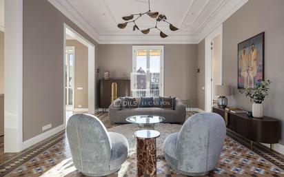 Este amplio y cuadrado apartamento de 197 m² cuenta con un gran balcón orientado al sur, que inunda el interior de luz natural. Diseñado para ofrecer comodidad y privacidad, dispone además de cuatro amplios dormitorios dobles, cada uno con su propio baño en suite, una característica poco común en el centro de Barcelona. Los interiores presentan una refinada combinación de suelos hidráulicos originales y elementos de diseño contemporáneo de Nobohome, lo que fusiona la tradición con la elegancia. Cada detalle, desde la carpintería a medida y los techos altos hasta los acabados de lujo, se ha seleccionado cuidadosamente para ofrecer una vida sin esfuerzo. La propiedad se entrega completamente amueblada y equipada, lo que la convierte en una oportunidad turnkey (lista para entrar a vivir) para quienes buscan una vivienda exclusiva en el corazón de la ciudad. La sala de estar y la cocina, de planta abierta, se abren a una terraza privada, perfecta para relajarse o entretenerse mientras se disfruta de unas vistas maravillosas de aves y palmeras. Cada detalle del apartamento se ha elaborado con los más altos estándares de diseño modernista, lo que da como resultado un ambiente luminoso y acogedor. Ubicado en la cotizada zona Quadrat d'Or, este apartamento combina un estilo de vanguardia con comodidad, lo que lo convierte en la opción perfecta para quienes valoran tanto la estética como la funcionalidad.