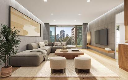 Lucas Fox presenta esta magnífica propiedad de obra nueva (dos años) diseñada de la mano de la premiada arquitecta Odile Decq. Estamos ante una comunidad residencial única en Barcelona, con un diseño exclusivo y una oferta de servicios inigualable. La promoción ofrece a sus residentes magníficas zonas comunes, además de seguridad permanente y servicio de conserjería. Entre las zonas comunitarias, destaca un área deportiva con gimnasio, spa y piscina de más de 1000 m², así como un extenso jardín, una estancia polivalente con simulador de golf y una pista de pádel. Desde el local comercial de la planta baja podemos acceder al restaurante Gran Café Rouge, con el famoso chef Romain Fornell al frente, mientras que la planta 27 cuenta con una fantástica terraza en la azotea con piscina infinity y zona solárium con las mejores vistas de toda Barcelona. Esta vivienda de 98 m² presenta un estilo moderno en tonos neutros y un diseño diáfano, con espacios amplios y ventanales con acceso a la terraza. Esto permite la entrada de abundante luz natural, de forma que se consigue un ambiente luminoso y acogedor. Al entrar encontramos la amplia zona de día con un diáfano salón comedor con cocina americana. A su izquierda, tenemos un dormitorio doble y un baño de cortesía; a su derecha, está el dormitorio principal con su baño privado. Entre sus características podemos destacar los suelos de parqué de madera de bambú, armarios empotrados, puertas lacadas en blanco, sistema vivienda, luces LED y aire acondicionado frío-calor. La cocina está equipada con isla central y electrodomésticos integrados de la marca Miele. Los baños cuentan con grifería de la marca Dornbracht y acabados de la gama X-Light de Porcelanosa. El precio incluye dos plazas de aparcamiento y un trastero.