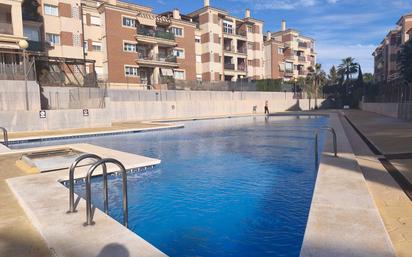 Urbanización privada con piscinas, zonas ajardinadas y zona para niños.