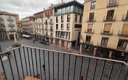 Se vende piso en pleno centro de Teruel, en la Plaza del Torico. Vivienda de 265 metros de superficie, da a la Plaza Carlos Castel y a la calle Muñoz Degrain. En la actualidad está dividido en dos apartamentos de una habitación y un piso de tres habitaciones. Entre todos dispone de cinco habitaciones, tres salones, tres cocinas y cuatro cuartos de baño. La vivienda grande tiene el salón de 43 metros a la plaza. Calefacción comunitaria con contadores individuales. Posibilidad de plaza de garaje.