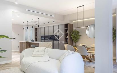 Lucas Fox presenta este amplio piso de cinco dormitorios en el centro de Valencia, a pocos metros de la calle Colón y de la Gran Vía del Marqués del Turia. Se encuentra muy cerca de la Estación del Nord, la estación de trenes más importante de Valencia, y a dos minutos de la plaza del Ayuntamiento. La vivienda se acaba de reformar en su totalidad, por lo que está a estrenar, con todas las instalaciones nuevas y con los últimas tendencias de decoración actual. Goza de una distribución ideal, con la zona de día y la zona de noche claramente diferenciadas. Además, cuenta con techos altos y ventilación cruzada. La cocina de diseño cuenta con una isla central de grandes dimensiones y sistema de inducción invisible Cooking Surface, electrodomésticos Bosch integrados y grifería Grohe. Entre sus características, cuenta con sistema de domótica (mecanismos Simon, control de persianas y luces remoto), aire acondicionado con tres máquinas y zonas diferenciadas y electrodomésticos incluidos, incluso cafetera y vinoteca. Finalmente, goza de muy buen aislamiento gracias a sus nuevas ventanas de PVC de la marca Cortizo. Junto al edificio tenemos la posibilidad de alquilar una o dos plazas de garaje. Además, cabe la posibilidad de incluir el mobiliario en la compra de la propiedad. Póngase en contacto para más información.
