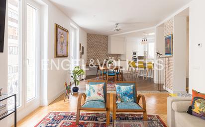 Engel & Völkers ofrece esta espectacular propiedad reformada y exterior de 129 metros cuadrados en la Plaza de Olavide, en una de sus calles de acceso, tranquila, peatonal y ajardinada. Con una reforma elegante y funcional, la vivienda se distribuye en dos espacios bien diferenciados. Accedemos a un amplio y bonito hall comunicado con un gran salón con tres balcones en orientación sur, y una cocina integrada muy espaciosa con electrodomésticos de alta gama. En la zona interior de la vivienda, dos amplios dormitorios con armarios empotrados, ambos con baño en suite, con diseño y decoración cuidada. El baño dormitorio principal cuenta además con una bonita bañera. La finca preciosa con fachada clásica se encuentra en perfecto estado de conservación y con la ITE favorable. Dispone de portero, no tiene barreras arquitectónicas y se incluye un práctico trastero. Esta propiedad está situada en uno de los barrios más castizos y vivos de Madrid, en la popular Plaza de Olavide (finalizadas las obras de ajardinamiento, modernización y peatonalización) y junto a la calle Fuencarral, famosa por su ambiente con mucha vida y zonas comerciales. Hay una completa red de transportes públicos de bus Nº 3, 16, 21, 37, 61, 147, 149, 23; y las estaciones de metro Bilbao, Quevedo, Iglesia y San Bernardo. La zona tiene un rápido acceso a la autovía A6 y una excelente oferta de comercio, restauración y ocio. En el entorno hay centros educativos en todos los niveles de enseñanza reglada y cerca se encuentran las instalaciones de parque deportivo del Canal Isabel II con campo de prácticas de golf, pádel y fútbol y otras actividades deportivas.