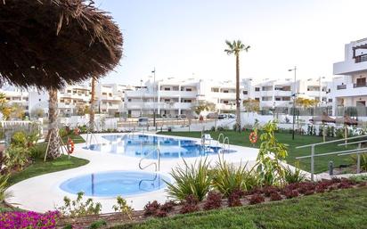 • Venta de pisos a estrenar en la playa de San Juan de los Terreros, perteneciente al término municipal de Pulpí, Almería. Situados en residencial de lujo de reciente construcción, a 900 metros de la playa, muy cerca del paseo marítimo ya solo 13 km del centro de Águilas donde dispondrá de todo tipo de servicios y amenidades como centros comerciales, hospitales, colegios .... • Viviendas de 1 dormitorio con espacios exteriores como terrazas o jardines (según disponibilidad) • La vivienda se distribuye en un espacioso y luminosa concepto abierto con amplio salón comedor desde donde, a través de una gran ventana corredera) se accede a la zona exterior de la vivienda (terraza o jardín). Compartiendo el espacio con el salón encontramos la cocina en forma de "L" de estilo moderno con lavadero. (En caso de ático, desde el techo de desprende una escalera de obra que da acceso al solarium privado). Un pequeño distribuidor conduce a la zona de descanso donde encontramos un baño de invitados y dos amplios dormitorios con armarios empotrados (dormitorio principal con baño privado). • Se entrega vacía (muebles opcionales) con la cocina de silestone amueblada y equipada, aire acondicionado (frío y calor) instalado en toda la vivienda y puerta de seguridad. • El precio incluye plaza de parking y trastero. • Urbanización cerrada con amplias zonas ajardinadas y piscina comunitaria y pistas deportivas. • El reportaje fotográfico se corresponde a la vivienda piloto por lo que pueden existir discrepancias con las viviendas disponibles tanto en distribución interior de las mismas como la ubicación en distintas fases del complejo