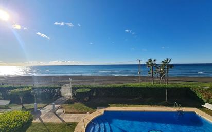 Vivienda situada en primera línea de playa en Torre Benagalbón, impresionantes vistas frontales, orientación Sur, lo que la hace muy luminosa Distribuida en: amplio recibidor, cocina independiente con lavadero, cuatro dormitorios (con armarios empotrados), dos cuartos de baño completos y amplio salón comedor con acceso a la terraza frontal al mar. Desde todos los dormitorios también se puede ver el mar. Incluye plaza de aparcamiento y trastero, recinto con piscina y zonas verdes. Junto a restaurantes, chiringuitos, supermercados, comercios, pistas de tenis y pádel...a escasos cinco minutos en coche del Rincón de la Victoria. Gastos de compraventa no incluidos en el precio
