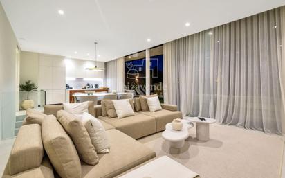 Moderno apartamento en planta baja con jardín en Talamanca. Bienvenido a este impresionante y moderno apartamento en planta baja, situado en la codiciada zona de Talamanca, Ibiza. Terminado en 2023, este elegante inmueble orientado al suroeste ofrece 135 m² de refinada superficie habitable, complementada con un generoso jardín privado de 45 m², un refugio ideal para relajarse o comer al aire libre. Esta elegante residencia cuenta con cuatro amplios dormitorios, cada uno con armarios empotrados, y cuatro modernos cuartos de baño equipados con accesorios de alta gama y un diseño elegante. La sala de estar y el comedor de planta abierta fluyen a la perfección hacia una cocina de diseño totalmente equipada con electrodomésticos de primera calidad, y se abre directamente a la terraza y al jardín privados, creando el escenario perfecto para la vida interior y exterior. La comodidad está garantizada durante todo el año gracias al aire acondicionado y la calefacción central, mientras que las ventanas de doble acristalamiento proporcionan un aislamiento y una insonorización óptimos. Como parte de una comunidad residencial bien cuidada, los residentes disfrutan de acceso a una impresionante piscina rodeada de hermosos jardines, que ofrece un entorno sereno y exclusivo para relajarse y descansar. La propiedad también incluye un trastero privado y una plaza de aparcamiento subterráneo, lo que proporciona practicidad y seguridad. Situada a solo 100 metros de las cristalinas aguas de la playa de Talamanca, esta excepcional vivienda se encuentra a poca distancia a pie de algunos de los mejores restaurantes, boutiques y locales de ocio de Ibiza. Con su inmejorable ubicación, sus modernas comodidades y sus ventajas adicionales, esta propiedad es ideal como residencia principal, casa de vacaciones o oportunidad de inversión en una de las zonas más codiciadas de la isla. Estaremos encantados de concertar una visita con usted. Tenemos muchas más casas, apartamentos, villas, fincas, locales comerciales y terrenos en alquiler y venta en la isla. Gracias por considerarnos su agencia inmobiliaria en Ibiza. También ofrecemos visitas virtuales bajo petición. Póngase en contacto con nosotros hoy mismo para solicitar una visita o más información.