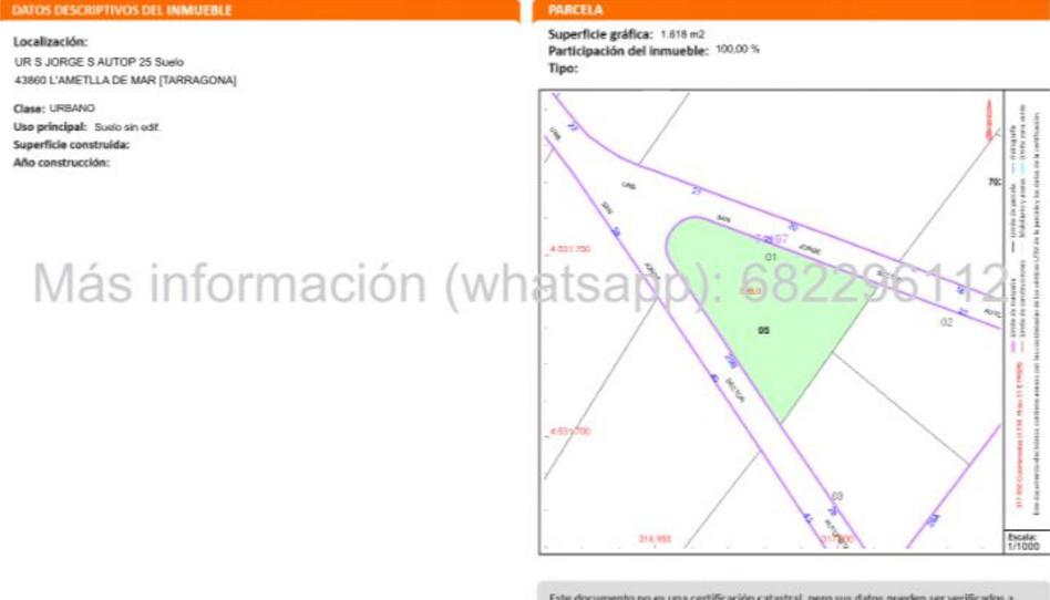 Land for sale (total of 1.618m2) in the "woods section" of the Urbanisation of Sant Jordi d'Alfama in l'Ametlla de Mar (Tarragona) well situated and with building permissions. 900 metres away from the nautical club. A few kilometres away from the beautiful local beaches, and direct access to the local town of Ametlla de Mar, and a few kilometres away from Hospitalet de l'Infant, Miami Platja, Reus (local airport) Tarragona...(NEGOTIABLE PRICE)