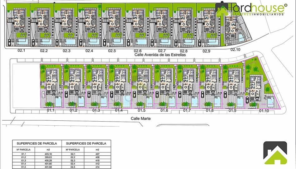 PV_1102. Lordhouse. En San Juan De Los Terreros, Almería, disponemos para su venta, varias parcelas para la construcción de vivienda. Parcelas de 400 m² por 120.000 €, parcelas de 500 m² por 150.000 €, posibilidad de vivienda construida por 410.000 €. La propiedad se encuentra en la calle Marte esquina con Avd. De Las Estrellas. A unos 700 metros de la costa.