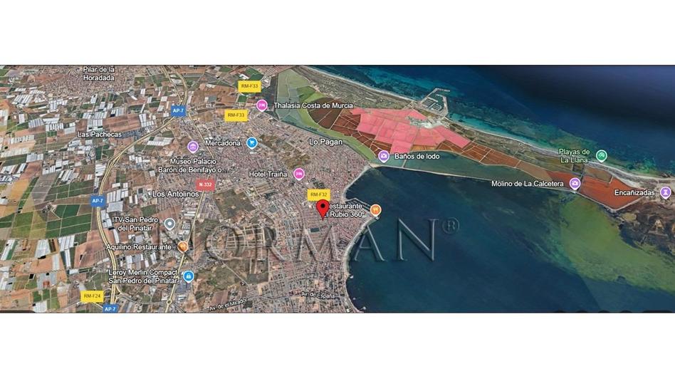 Inmobiliaria Norman le ofrece este solar con 126m² aprox. en una extraordinaria ubicación. Tiene un uso residencial para una o dos viviendas en 2 plantas con porche y patio. La situación es excelente ya que tiene fachada a una de las calles principales de gran anchura, por lo que tiene amplitud de vistas, y desemboca, a escasos metros, en la playa de Villa Nanitos, Puerto deportivo, Club Náutico, Casa del Mar, Lonja de Pescado, mercado semanal, y un largo etc. Al ser un sitio céntrico, aunque tranquilo, está cerca de todos los servicios. También está a un paseo del Parque Regional de las Salinas y Arenales de San Pedro del Pinatar, que es uno de los lugares más bellos de la Región de Murcia en un entorno precioso con fauna (flamencos, garzas, etc.) y flora autóctona. Es ideal para pasear, ir en bici, baños de lodo, bucear, navegar. Disfrutarás de unos preciosos e idílicos atardeceres.