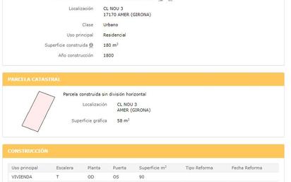 Solar Residencial en Amer, provincia de Girona, de tipología Plurifamiliar con una superficie de 45 m², con edificabilidad estimada de 234 m² y un número estimado de 2 unidades a edificar. El de propiedad que se posee en la finca registral es del 100. Actualmente el solar se encuentra desocupado y libre de edificaciones en su interior. Las Normas Subsidiarias de Amer, le otorgan la calificación de Zona Casco Antiguo, Clave 10. Se está tramitando el Plan de Ordenación Urbanística Municipal de Amer, se encuentra aprobado inicialmente.