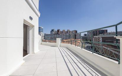 Diseño, luz, espacio y una terraza que lo cambia todo. Atico de 200 metros cuadrados totales en una ubicación privilegiada, donde 60 metros de terraza en esquina se convierten en el auténtico corazón de la vivienda. Y no es una terraza cualquiera: tiene acceso directo desde el salón, la cocina y dos de los dormitorios, con zonas diferenciadas que permiten disfrutarla de formas distintas sin perder ni un gramo de intimidad. El interior, con 140 metros construidos, está pensado para vivir bien. Tres dormitorios amplios, dos baños y un dormitorio principal con suite y vestidor que ofrece ese punto de distinción que se agradece en el día a día. El salón comedor es generoso, de los que invitan a quedarse, y la cocina abierta —totalmente equipada con acabados de alta gama— fluye de forma natural hacia el espacio social sin invadirlo, creando esa sensación de amplitud y conexión que tan difícil es encontrar. La luz natural es protagonista en cada rincón gracias a sus vistas al exterior, y el confort está garantizado todo el año con aire acondicionado, bomba de calor y calefacción central. Los armarios empotrados y un práctico cuarto de despensa y lavado completan una distribución donde cada centímetro tiene sentido. El edificio cuenta con ascensor y la vivienda se presenta en unas condiciones que simplemente enamoran desde el primer momento. Un ático de autor, en una zona top, con una terraza de ensueño. Estas oportunidades no esperan.