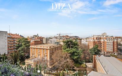 Engel & Völkers les presenta este exclusivo ático en lo mejor del Barrio de Salamanca – Castellana. En un edificio vanguardista de nueva planta, con distribución de una sola vivienda por planta, construido en 2007 y diseñado por los arquitectos Bueso – Inchausti & Rein, premio de arquitectura del Ayuntamiento de Madrid Se trata del ático del edificio, diseñado a dos alturas –dúplex- sexta y séptima planta. La superficie total de la vivienda suma 468 metros cuadrados construidos, incluidos más de 120 m2 de terrazas. Tiene orientación sur y oeste. En la planta baja se encuentra la zona privada y en la planta superior la zona social. En la zona privada disponemos de tres dormitorios, todos con baño en suite más la cocina. La habitación principal tiene una superficie total de más de 70 m2 y terraza privada de 20 m2. A la planta social puede accederse tanto por la escalera como mediante un ascensor privado. Aquí nos encontramos con un enorme salón acristalado de 100 m2, una barra de cocina, un aseo de invitados y un jacuzzi con vistas. Desde el salón y desde el jacuzzi accedemos a la terraza superior de otros más de 100 m2 con piscina privada. Las vistas son totalmente abiertas, despejadas y realmente espectaculares. Respecto a las calidades de la propiedad, destacan el mármol travertino arenado en todas las paredes, los techos de hormigón visto y el suelo de tarima flotante de jatoba, así como de pizarra. La calefacción es por suelo radiante y está totalmente domotizada, temperatura, persianas, iluminación, seguridad, etc. La vivienda dispone de dos amplias plazas de garaje de acceso directo así como trastero. Cuenta con portero. La vivienda necesita renovación. En definitiva una vivienda de máximo lujo, diseño y exclusividad en el corazón del Barrio de Salamanca. La finca está ubicada dentro del barrio de Salamanca, en la zona de Castellana, la Milla de Oro, una de las zonas más prestigiosas de Madrid. Destaca su enclave estratégico: cerca de Embajadas y de la mayor zona de compras de lujo como Chanel, Jimmy Choo, Omega o Louis Vuitton, las mejores tiendas gourmet, hoteles de lujo, restaurantes exquisitos, prestigiosas galerías de arte en Serrano y Velázquez y una amplia oferta de servicios que la convierten en la zona residencial y comercial de mayor prestigio gracias a sus infraestructuras con las que cuenta la zona, contando con diversas paradas de Metro y autobús. El barrio de Salamanca es una de las zonas más relevantes de Madrid, tanto por su peculiar distribución como por los vecinos que tradicionalmente han habitado sus emblemáticas calles. Su construcción data de la segunda mitad del siglo XIX y corresponde a la ampliación urbanística llevada a cabo durante el reinado de Isabel II. El precursor al que se debe su nombre fue el malagueño José de Salamanca y Mayol, Marqués de Salamanca, quien concibió un nuevo emplazamiento con una cuidada edificación que albergara a las clases aristocráticas y burguesas de Madrid De estilo decimonónico, se caracteriza por su especial distribución regular en forma de damero con calles perpendiculares. Sus edificios gozan de especial interés gracias a su calidad arquitectónica y la belleza de sus fachadas. Tradicionalmente Salamanca fue una zona de uso residencial, especialmente habitada por las élites políticas y económicas del país.