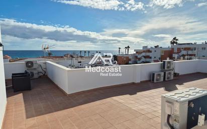 Oportunidad de inversión en una de las mejores zonas de Mojácar playa: Precioso ático recientemente reformado, situado en inmejorable ubicación a escasos 150m de la playa de Mojácar. El piso dispone de un total de 100 m2 está situado en primera planta y tiene entrada independiente. La vivienda tiene 3 amplios dormitorios muy luminosos (todos ellos orientados al mar), 2 cuartos de baño completos, cocina americana amueblada, y gran salón-comedor desde el cual se accede a una terraza que tiene acceso al amplio solárium de la vivienda equipado con barbacoa y asientos de obra, desde el cual se puede disfrutar de fantásticas vistas al mar. El piso es totalmente exterior, muy luminoso y ventilado, su ubicación es excepcional cerca del hotel Continental y rodeado de todos los servicios al alcance. No pierda la oportunidad de adquirir esta magnífica vivienda y solicite su visita, estaremos encantados de atenderle. *EL COMPRADOR NO TENDRÁ NINGÚN GASTO DE LA GESTIÓN DE LA INMOBILIARIA. El precio de compra no incluye impuestos (ITP), gastos de notaría ni registro. Consúltenos para ampliar información