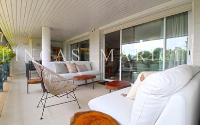 Impecable dúplex en la exclusiva urbanización Parc de Mar, Sitges Descubre este fantástico dúplex de 160 m² ubicado en la prestigiosa urbanización Parc de Mar, a tan solo un minuto a pie de la playa y rodeado de tranquilidad y zonas ajardinadas. La propiedad, totalmente reformada y en excelente estado, está lista para entrar a vivir. Distribuida en dos plantas, la vivienda cuenta con un amplio y luminoso salón-comedor con acceso directo a una generosa terraza con vistas despejadas, ideal para disfrutar del clima mediterráneo. La cocina, completamente renovada y equipada, ofrece diseño y funcionalidad. Dispone de tres habitaciones y tres baños completos, distribuidos estratégicamente para ofrecer privacidad y confort. En la planta superior se encuentra una segunda terraza tipo solárium, perfecta para relajarse o disfrutar de cenas al aire libre. La finca ofrece máxima seguridad y comodidad en una de las mejores zonas residenciales de Sitges, junto al paseo marítimo y rodeada de naturaleza. Sitges: calidad de vida a orillas del Mediterráneo Sitges, antiguo pueblo de pescadores, es hoy un destino internacionalmente reconocido por su calidad de vida, su clima suave durante todo el año y su espíritu acogedor y cosmopolita. A tan solo 30 km del aeropuerto de Barcelona y con excelente conexión por autopista, cuenta con puerto deportivo, campo de golf, y un encantador casco histórico frente al mar. Sus más de 4 km de playas de arena fina y aguas cristalinas con bandera azul, su animado Paseo Marítimo flanqueado por mansiones modernistas, y su vibrante calendario de eventos culturales, festivos y gastronómicos hacen de Sitges un lugar privilegiado para vivir. Una oportunidad única de disfrutar del auténtico estilo de vida mediterráneo en un entorno exclusivo. [IW]