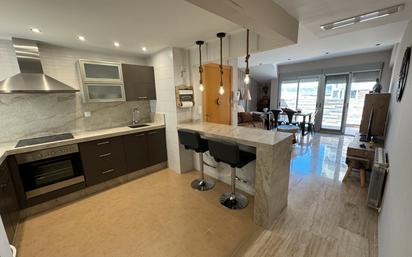 Bonito ático construido con materiales de primera calidad y situado en el mismo centro de Villena, cerca de colegios, transportes, y por donde pasa toda la vida social de la ciudad. La vivienda es muy luminosa, puesto que tiene orientación oeste con una bonita terraza cubierta por un toldo automático. El piso se distribuye en un amplio salón con salida a la terraza y con la cocina abierta al salón, separada por una barra. Tiene tres dormitorios con armarios empotrados y dos cuartos de baño, uno de ellos en suite en el dormitorio principal. Entre sus calidades, destacan los suelos de mármol, aire acondicionado frio/caliente por conductos, calefacción de Gas Natural, carpintería exterior de aluminio con doble cristal, paredes lisas y super luminoso. Una preciosa vivienda en el centro de Villena, muy luminosa y lista para entrar a vivir y disfrutarla.
