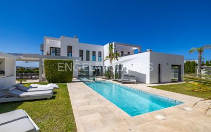 Bienvenido a una impresionante residencia repartido en 3 plantas, una joya arquitectónica que redefine el lujo en cada uno de sus 470 metros cuadrados de superficie habitable. Construida en 2014, se alza sobre un extenso terreno de 1659 metros cuadrados. Al entrar, se despliega un mundo de elegancia y sofisticación. Con cinco habitaciones y siete baños, cada espacio ha sido diseñado para maximizar el confort y la funcionalidad. La planta abierta conecta de manera fluida con vistas panorámicas que abarcan desde verdes paisajes hasta el mar mediterraneo, creando un ambiente de serenidad. La cocina, equipada con electrodomésticos de última generación y armarios empotrados, es un sueño para cualquier gourmet. Entre las características más destacadas de esta propiedad se encuentran 4 piscinas que invitan a disfrutar de momentos de relajación con vistas al mar. El bienestar está garantizado con un gimnasio privado y una sauna. Un amplio garaje y un sótano completo añaden funcionalidad y espacio adicional, mientras que el patio, la terraza y el balcón ofrecen múltiples opciones para disfrutar del aire libre.