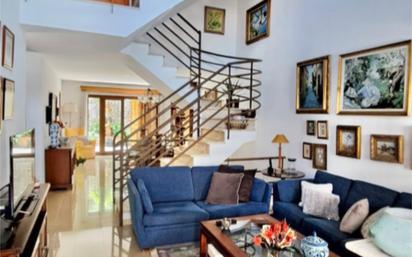 Se vende chalet adosado en Palma, barrio de Son Espanyolet, zona destacada por colegios y servicios. Vivienda, de 308 m² se encuentra en una urbanizacion privada y consta de 5 habitaciones dobles con balcón, 3 baños completos, salon comedor de doble altura con chimenea, cocina amplia e independiente y coladuria. Terraza delantera y jardin posterior y lateral, ambos con acceso desde la sala comedor. Planta sotano con tres trasteros y cabida para tres vehiculos, ademas de 1 plaza de parking extra en el exterior. Calefaccion en toda la casa. La vivienda se encuentra amueblada y equipada . Abstenerse inmobiliarias.