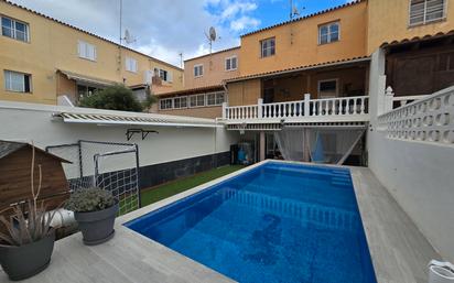 Te presentamos esta amplia vivienda adosada de 242 m2 construidos, distribuida en tres plantas, con garaje privado, terrazas y una espectacular piscina, situada en una zona bien comunicada, cercana a la Autopista Sur. La vivienda se encuentra alquilada, con un contrato hasta diciembre de 2026, es importante que la persona que compre, debe aceptar el inquilino hasta esta fecha máxima. En caso de que se compre, con el inquilino, hay posibilidad de negociación en el precio final. La vivienda completamente reformada, se vende sin mobiliario ni electrodomésticos, ya que pertenecen al inquilino actual. - Distribución de la vivienda: Planta principal: pequeño recibidor, salón luminoso orientado a fachada, baño completo con plato de ducha, cocina independiente totalmente equipada con mucho espacio de almacenamiento y salida a terraza con vistas a la piscina. Planta superior: tres dormitorios (el principal de gran tamaño, un dormitorio doble y otro simple), además de un amplio baño con bañera y lavamanos doble. Techos altos que aportan amplitud y luminosidad. Planta inferior: dormitorio doble adicional, dos aseos, pequeña cocina auxiliar y garaje con puerta manual. Desde aquí se accede a la terraza principal, la joya de la casa, con césped artificial y una piscina privada ideal para disfrutar del clima de Tenerife durante todo el año. Una propiedad perfecta tanto como residencia habitual para familias, como para quienes buscan un espacio amplio con zonas exteriores privadas en el sur de Tenerife. No dudes en contactar con nosotros para solicitar información, estaremos encantados de poder ayudarle. Datos meramente informativos. Impuestos y gastos de transmisión no incluidos en el precio de venta.