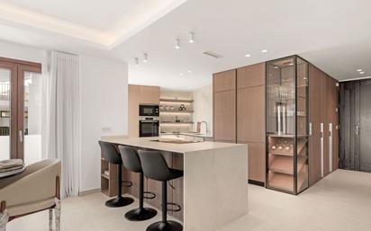Lujosa casa adosada en la zona de El Campanario. Esta propiedad única ha sido completamente renovada y ofrece un diseño interior elegante y personalizado. Distribuida en tres plantas, su distribución es práctica y elegante. La planta baja cuenta con un recibidor con armarios empotrados y un práctico lavadero. También hay un baño y un dormitorio o despacho con acceso inteligente a través de una puerta de panel oculto. La cocina es abierta, equipada con electrodomésticos Bosch y hecha a medida con una magnífica carpintería de madera, vitrina, encimeras de imitación piedra natural y una barra americana. El salón es amplio y luminoso, con un comedor y una sala de estar con chimenea. Desde aquí se accede a la terraza envolvente, que ofrece un espacio exterior cubierto y abierto, perfecto para comer al aire libre, bañarse o relajarse. El espacio exterior se extiende a un jardín privado de unos 150 m² con ducha exterior y conexión para un jacuzzi. En la planta superior hay tres dormitorios con baños en suite. En la planta baja encontramos una plaza de aparcamiento doble y un amplio trastero privado. Climatización Airzone Suelo radiante en baños Sistema de calentamiento de agua solar La comunidad cuenta con dos piscinas y una pista de pádel.
