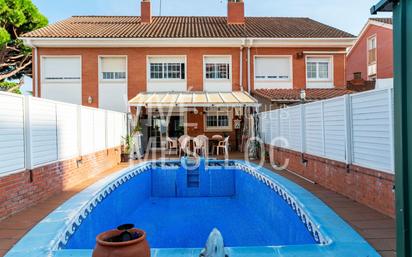 CASA ADOSADA CON PISCINA PRIVADA Casa de 210 m² distribuida en 4 plantas. En la planta principal encontramos un amplio salón comedor con chimenea, un baño con plato de ducha y una gran cocina office que da paso al jardín con piscina y barbacoa. La primera cuenta cuenta con 4 habitaciones dobles con armario empotrado y un baño completo. La última planta se trata de una preciosa buhardilla forrada de madera y con una terraza solárium. La casa dispone de calefacción, el suelo es de gres y la carpintería exterior es aluminio. Se encuentra situada cerca del centro del pueblo y 10 minutos de la estación de tren. En cumplimiento de la ley 32917 de 13 de febrero de 2018 del CÓDIGO CIVIL DE CATALUÑA, por el que se aprueba el Reglamento de Información al Consumidor a la compraventa y arrendamiento de viviendas en CATALUÑA, se informa al cliente que los gastos notariales, registrales e impuestos que le sean aplicables (ITP o IVA AJD) y otros gastos inherentes a la compraventa no están incluidos en el precio. [IW]