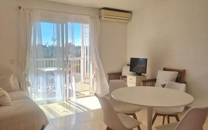 Se alquila acogedor apartamento de una habitación y terraza despejada situado en un una urbanización con piscina. Se encuentra a 400 metros de la playa. Se trata de un alquiler de mínimo 1 mes y máximo 2 meses. Se exije contrato justificación de la estancia temporal Precios: Ene/Feb/Mar/Nov/Dic 1500€/mes Abr/Mayo/Oct 1800€/mes Jun/Jul/Ago/Sep 2200€/mes