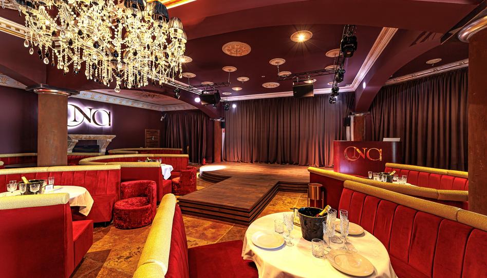 La sala principal es un Show Club con escena, montaje de DJ, mesas con sofas y gran barra.