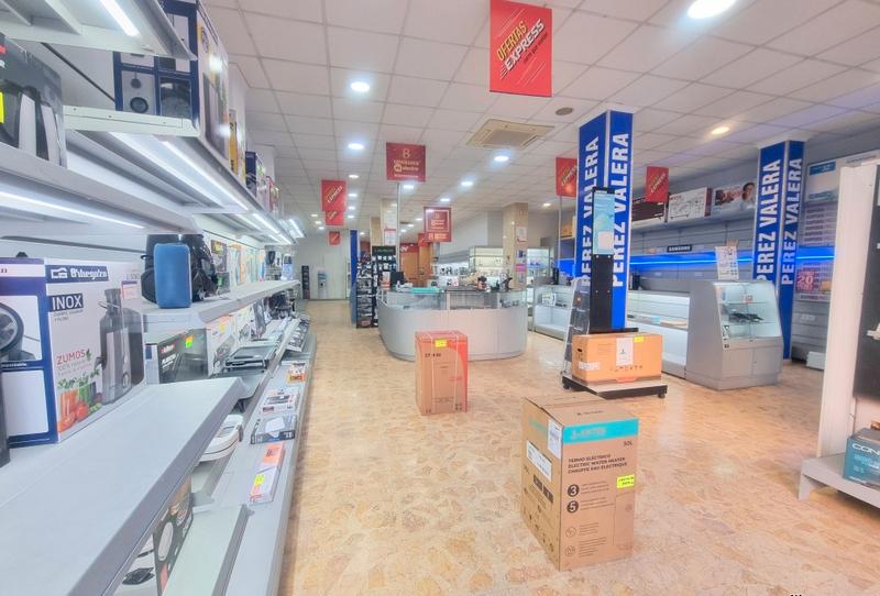 El local ha estado destinado a tienda de electrodomésticos, y eso se nota: zona de exposición amplia, recorrido cómodo, techos registrables con iluminación homogénea y una configuración interior muy adaptable para retail, showroom o servicios.