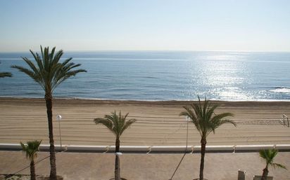 DISPONIBLE DE SEPTIEMBRE A JUNIO. Apartamento frente al mar en primera línea de playa. Tiene dos dormitorios con camas de matrimonio y una habitación de despacho, Un baño, cocina independiente y galería, salón y gran terraza acristalada. Es todo exterior y muy luminoso. Tiene lavadora, lavavajillas, secadora, frigorífico, cocina vitro, termo de gas butano, ventiladores de techo en todas las habitaciones. Con plaza de aparcamiento. Situado en una urbanización privada con piscina, pista de tenis, de fútbol y baloncesto, mini-golf, parque infantil, y amplias zonas con jardines. Tiene servicio de bus urbano a Alicante, cafeterías, restaurantes, supermercado, panadería y farmacia. Urbanova está situada al sur de la ciudad de Alicante, a 8 km de la estación del AVE y del aeropuerto. así como de las autovias de Madrid y del Mediterraeo.