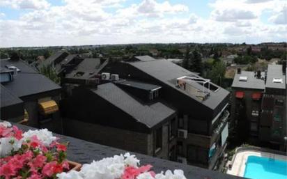 ¡Abstenerse Inmobiliarias! No serán atentados bajo ningún concepto. Precioso ático con excelentes vistas verdes a todo Majadahonda, al lado del Bus-VAO (10 min a Madrid-Moncloa con autobús). Justo entre Majadahonda y Las Rozas (10 min andando a cada centro). Disponible a partir de marzo. Se alquila sin muebles. Se puede visitar y reservar. Zona muy tranquila y residencial, farmacia, supermercados, colegios y guarderías alrededor (todo a máximo 5 min andando). Gran urbanización, con muchas zonas comunes: 2 piscinas separadas (una para niños), zona de juegos (pista de tenis, pista de futbol, tobogán, etc. ), 2 gimnasios, sala social, mucho jardín y verde. Está situado al lado de la salida de la A-6, dirección Madrid, autobuses en todas direcciones. Rápido acceso a la a la carretera A-6 (con y sin Bus-VAO), carretera de El Escorial M-505 y a M-50. Amplio salón con techos altos y muchos armarios, cocina, 2 habitaciones (1 muy grande), baño con luz natural, preciosa terraza con vistas y trastero muy grande. No se necesita plaza de garaje, hay suficiente espacio en la propia calle. Muchos armarios empotrados, Calefacción individual. Orientación sur. Ojo: el piso no está apto para gente de más de 1,80 m de altura ya que aunque tenga techos hasta 4 metros en el salón, en el baño el techo es solo apto para gente de hasta 1,80 m de altura.