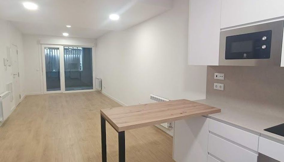 Este apartamento tiene un salón comedor amplio con la cocina integrada totalmente equipada y con acceso a dos amplios patios, uno de 5,40 m y otro de 20 m.