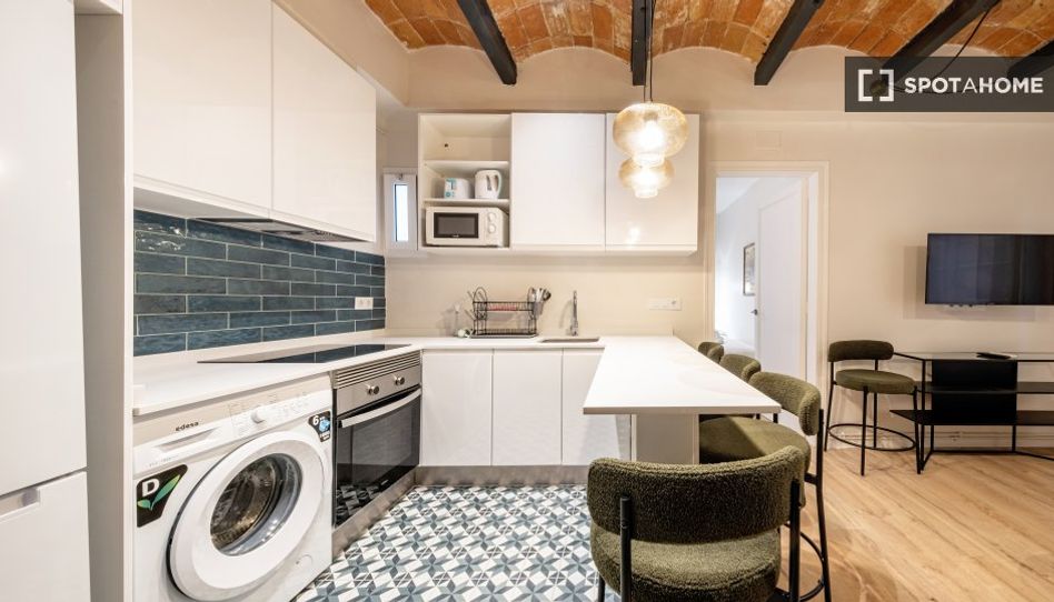 Este encantador apartamento en El Baix Guinardó, Barcelona, cuenta con 4 dormitorios y está completamente amueblado. Incluye aire acondicionado central y calefacción de gas natural. La cocina está equipada con horno y lavadora. El propietario no vive en la propiedad, lo que lo hace perfecto para estudiantes, profesionales y parejas. No se admiten mascotas ni fumar. Spotahome ha revisado personalmente esta propiedad.