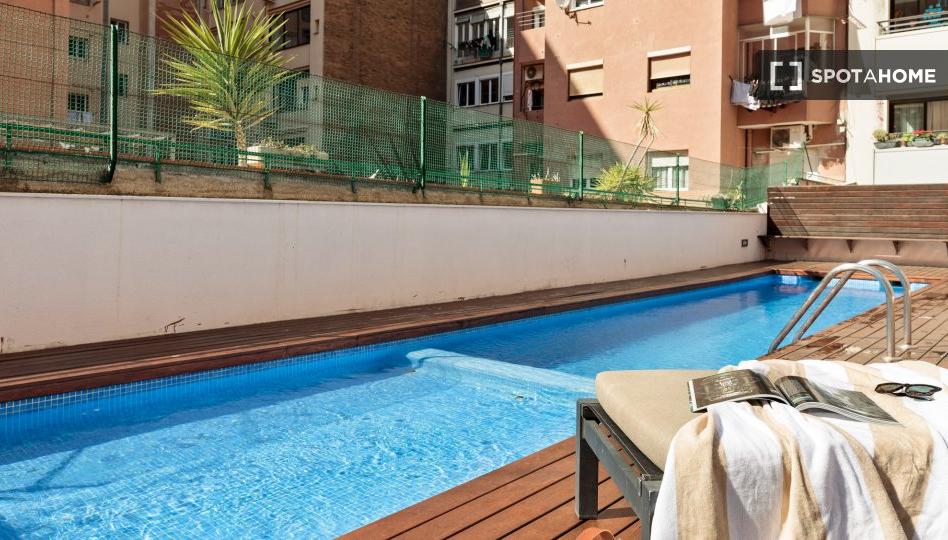 Se alquila piso amueblado de 2 habitaciones en la C/ De Sardenya. La propiedad está en el 4to piso de un edificio con ascensor. La propiedad incluye balcón, acceso a la piscina, aire acondicionado y lavadora.