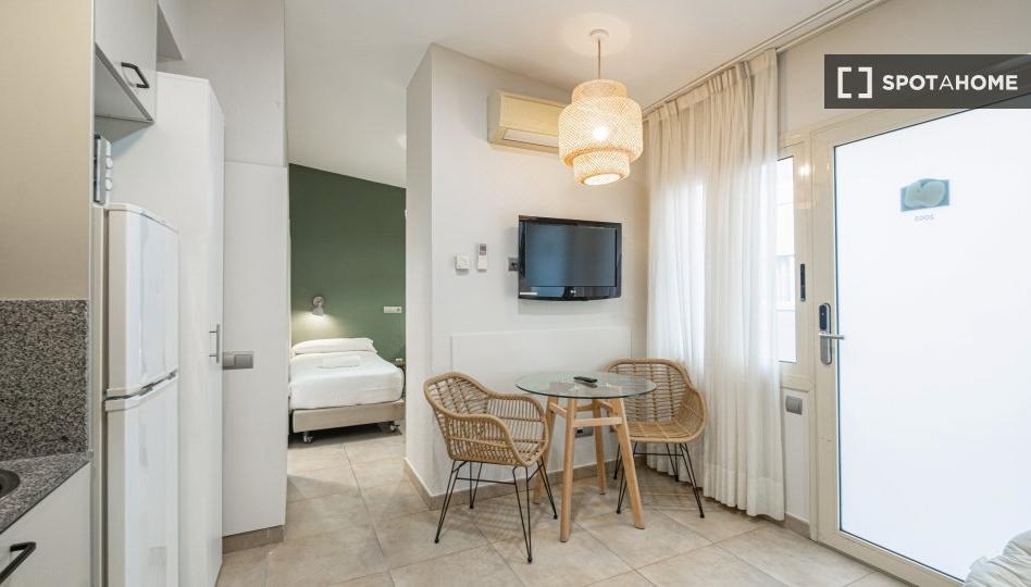 ¿Buscas un estudio acogedor y cómodo en Sants, Barcelona? Este estudio completamente amueblado, equipado con aire acondicionado individual y calefacción eléctrica, ofrece comodidad y funcionalidad. La cocina está equipada con electrodomésticos esenciales y la propiedad incluye wifi y agua en la renta mensual. Consultado por Spotahome para tu tranquilidad.