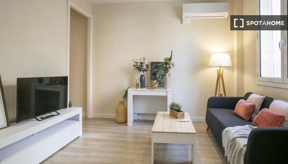 Este apartamento de 3 habitaciones, muy bien equipado, se encuentra en Hostafrancs, Barcelona. Está completamente amueblado y equipado con aire acondicionado individual, calefacción eléctrica individual, agua caliente por gas natural e incluye wifi. Con balcón, cocina totalmente equipada con lavavajillas y horno, lavadoras compartidas y ascensor, la propiedad es ideal para quienes buscan un espacio cómodo y moderno. Se admiten mascotas y está prohibido fumar. Los suministros se pagan directamente al propietario. Spotahome no ha verificado personalmente esta información, pero todos los propietarios deben pasar por nuestro exhaustivo proceso de verificación.