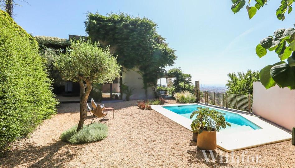 Exclusiva propiedad de belleza natural con piscina privada y un frondoso jardín con vistas espectaculares a Barcelona skyline.