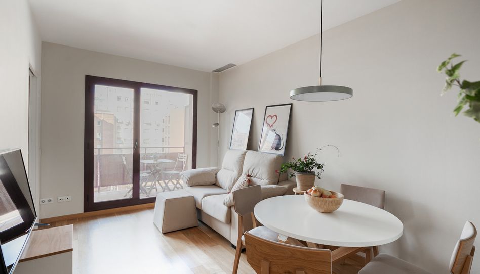 Este piso, ubicado en una finca moderna en la calle Navas de Tolosa, destaca por su funcionalidad, luminosidad y tranquilidad. El salón comedor, amplio y muy luminoso, cuenta con sofá, televisión y zona de comedor, con muebles recientemente renovados. Desde aquí se accede a un cómodo balcón interior con mesa y sillas, ideal para disfrutar del desayuno o un café al aire libre con vistas al patio de manzana típico de Barcelona.