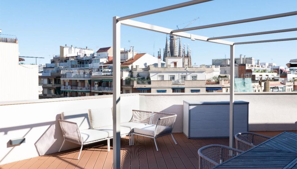 Exclusivo y luminoso ático, con terraza privada de 64 m2 y vistas panorámicas a Barcelona y a la emblemática Sagrada Familia, situado en el corazón de Barcelona, está esperando para ser su nuevo hogar.