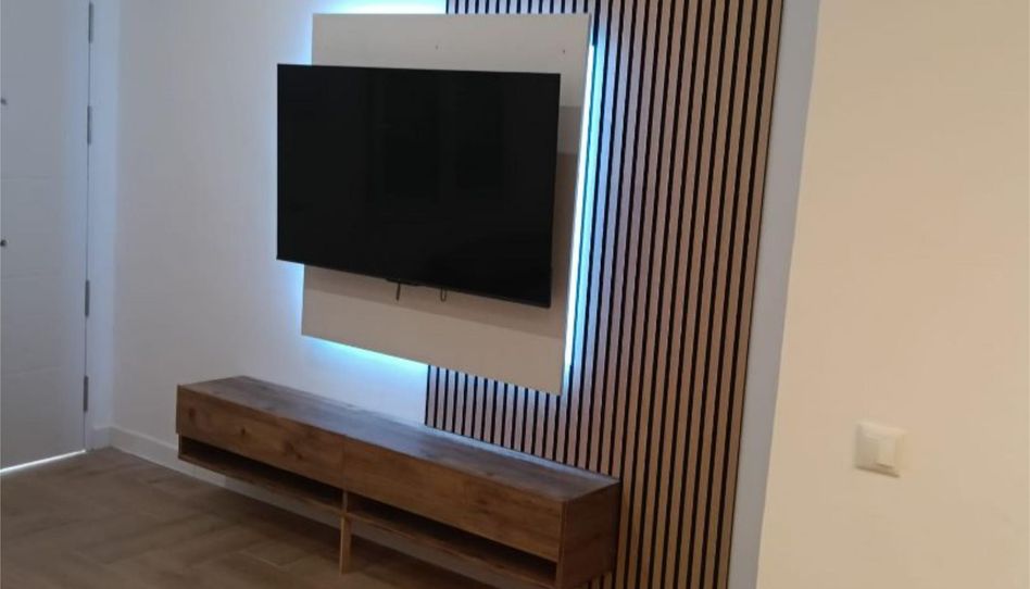 En la zona baja, tiene una cocina-salón comedor, sofá cheslón con Smart TV de 55quot;