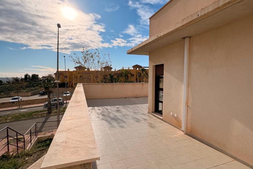 Desde aquí, accede a una acogedora terraza donde podrás disfrutar del aire fresco y las vistas. La piscina comunitaria es el complemento perfecto para esos días de calor, ofreciendo un espacio de diversión y relajación.
