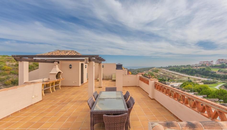 ALQUILER LARGA TEMPORADA. MAGNÍFICO ÁTICO EN PRIMERA LÍNEA DE GOLF CON IMPRESIONANTES VISTAS AL MAR Y LOS VIÑEDOS DE MANILVA, Buenas calidades 3 Dormitorios / 2 baños con AMPLIO SALÓN y acceso directo a la terraza desde el salón, la cocina y el dormitorio principal. Gracias a su POSICIÓN ELEVADA disfruta de VISTAS PANORÁMICAS AL GOLF y MAR, la puesta de sol es espectacular desde esta posición. Situado entre ESTEPONA y el atractivo PUERTO DUQUESA, ambos a 5 minutos en coche y donde encontrar todo tipo de comercios y zonas de ocio. Supermercados, hospital y numerosos campos de golf a sólo 2Kms. Una de ellas es la prestigiosa FINCA CORTESIN, sede de la mundialmente famosa competición de golf \"Solheim 2023\", así como del Volvo Masters, etc. Caminando por el paseo marítimo se puede llegar al pueblo de Sabinillas y al atractivo Puerto de la Duquesa. En sólo 10 minutos andando encontrarás los primeros restaurantes. Esta propiedad se distribuye toda en una sola planta, es muy cómoda, tranquila, privada y luminosa hasta última hora. Dispone de piscina comunitaria y amplias zonas verdes. La propiedad incluye 2 plazas de aparcamiento y trastero.
