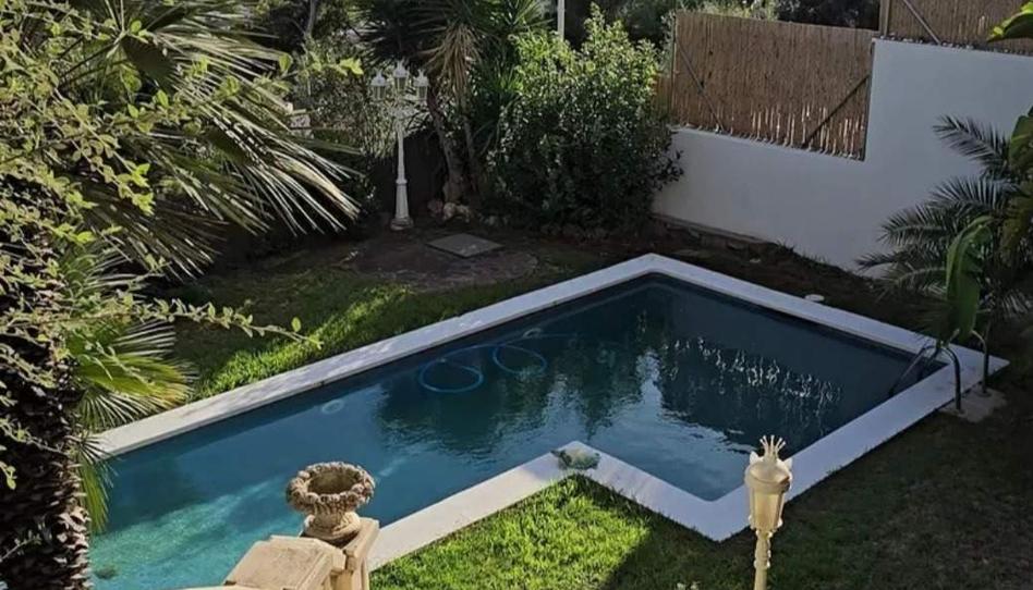 - Exterior: Jardín con piscina, amplia zona de césped y plantas naturales.