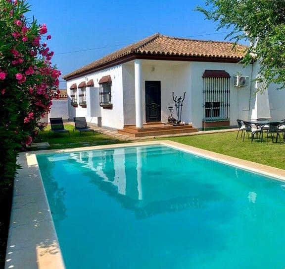 Se alquila chalet en Urb. Los Gallos, parcela de 850 m2. La vivienda consta de una sola planta de 140 m2, se distribuye en tres dormitorios con armarios empotrados, dos cuartos de baño con ducha ( uno de ellos con acceso desde el dormitorio principal), cocina con lavavajillas, horno, microondas. , salón comedor con A/A, porche delantero techado con muebles de jardín.