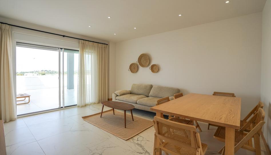 El apartamento cuenta con dos amplios dormitorios y un baño, distribuidos en 75m² construidos, ofreciendo espacios luminosos y perfectamente aprovechados. La vivienda se entrega completamente amueblada y equipada con una cocina moderna y funcional, lista para disfrutar desde el primer día. El salón-comedor, de generosas dimensiones, se abre a una terraza privada desde la que se pueden contemplar vistas panorámicas a la montaña y al jardín, creando un entorno ideal para relajarse o compartir momentos especiales.