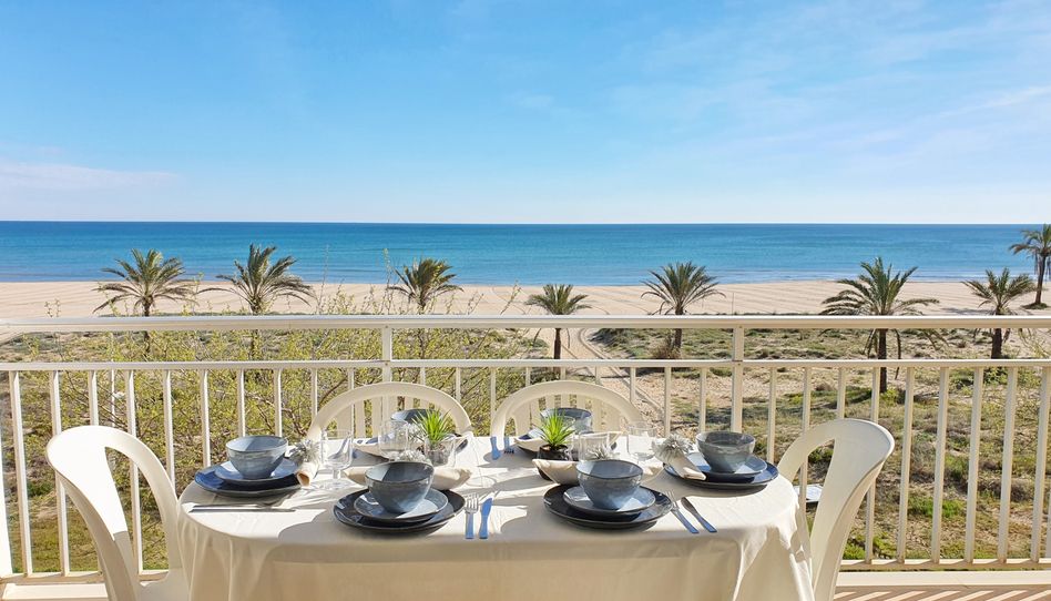 Apartamento de 3 dormitorios, piscina, piscina infantil y plaza de parking para 1 coche. Situado en primera línea de la playa con vistas frontales al mar, en el Passeig Maritim Neptú 103.