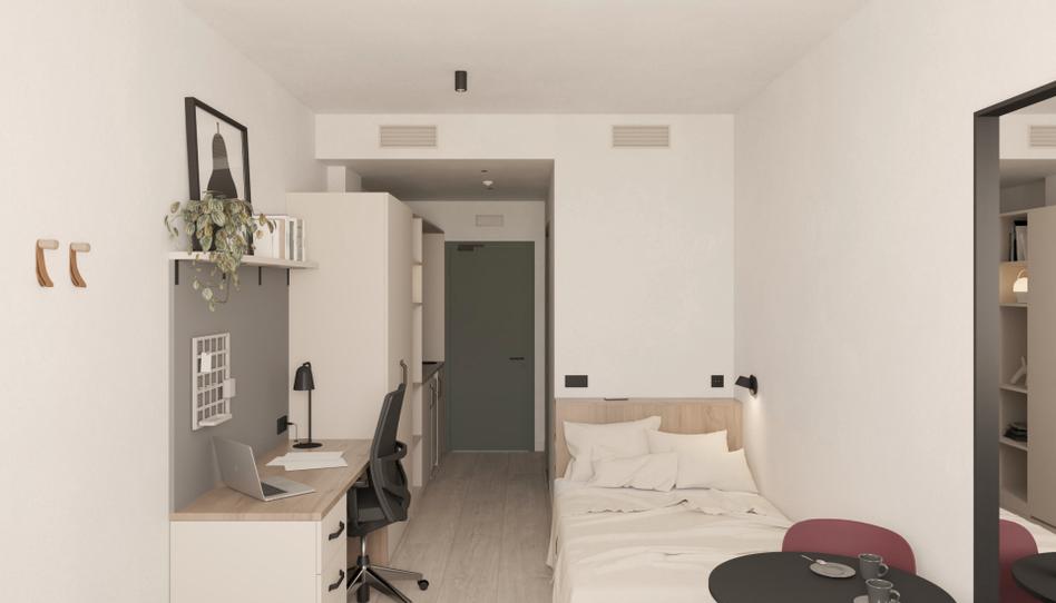 Codomo Living es una nueva experiencia de vivienda para estudiantes y jóvenes profesionales en España. Cada estudio está diseñado para optimizar tu comodidad, con un área de descanso acogedora, un rincón para estudiar o trabajar, un espacio cómodo para sentarse y tu propia cocina y baño. La cocina de colores claros está equipada con todo lo necesario para preparar comidas rápidas o impresionar a tus amigos con tus habilidades culinarias. El diseño elegante y funcional incluye una placa de inducción, microondas, nevera y mucho espacio de almacenamiento. El baño cuenta con ducha, inodoro, lavabo y espejo, destacándose por sus detalles en negro. Hay mucho espacio de almacenamiento en el armario, el escritorio y detrás de la cama.