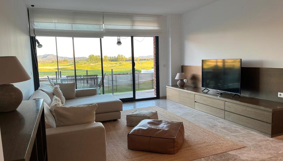 Amplio recibidor de entrada con gran armario empotrado muy práctico para guardar chaquetas, abrigos, . A la izquierda del recibidor y con vistas directas sobre el campo de golf encontramos por un lado un gran salón - comedor con salida directa a una gran terraza con vistas directas al tee del 18. La terraza cuenta con toldo y con unas vistas inigualables. Justo detrás del comedor y con puerta corredera tenemos una práctica cocina totalmente equipada. Por otro lado y también con vistas al tee del 18 encontramos una amplia suite de matrimonio con amplio cuarto de baño dentro, armarios empotrados en la zona de noche y con acceso directo a la gran terraza.